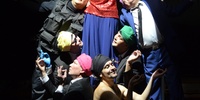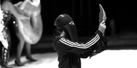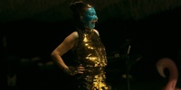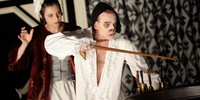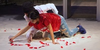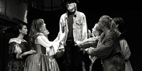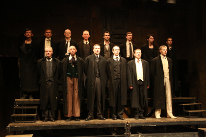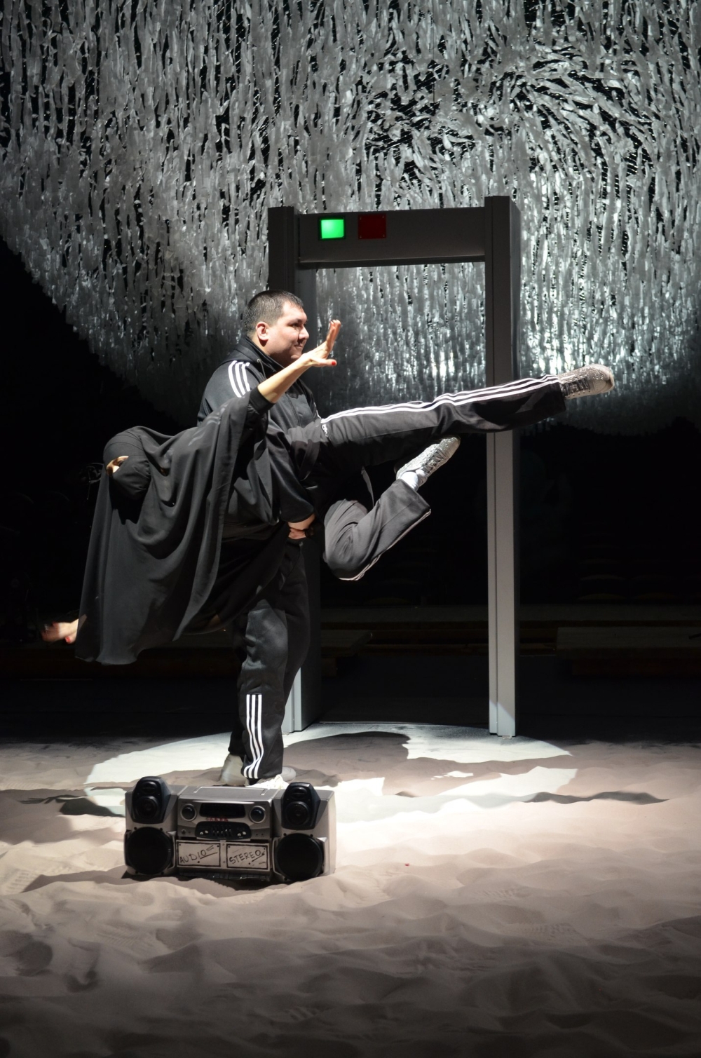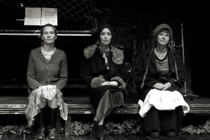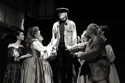 М.: Во-первых, никаких читок, естественно, там нет. Я, когда иду на репетицию, вообще никогда не знаю, какую роль я буду там играть — вообще никогда! Могу только догадываться по костюму (смеется). Как и все остальные - не знает никто. Что еще?.. Я лично никогда не видела, чтобы Франк выходил на сцену. Обычно он просто смотрит на нас, как мы в первый день совершено случайно разбредаемся или рассаживаемся по сцене: кто-то куда-то лег, кто-то сел, кто-то встал, – и начинает: «Так, ты...» – и говорит уже непосредственно сам текст и если его нужно орать, то так он его для нас и произносит, потому что уже «живет» его. И ты начинаешь пытаться. Поначалу ничего еще не соображая, просто повторяя, но зато потом... Мне кажется, он уже на самой первой репетиции видит то, каким спектакль может стать после десятого показа – в каждой мизансцене для тебя заложена масса новых уровней, которые начинают раскрываться и работать с каждым новым показом, и ты можешь бесконечно разгадывать, что же он еще планировал здесь для тебя — безумно интересно!