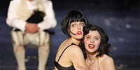 М.: Я тогда ничем не занималась: я только поступила и считала, что я — пуп Земли! И понятия не имела, что это за театр. А Катя предложила мне — езжай туда, может быть, денег заработаешь (смеется). Она прочитала об этом в газете, искали именно русскоговорящую. Если бы я прочитала это объявление сама, то никогда бы не пошла — ведь там было написано, что они ищут певицу! Но она мне об этом, конечно же, не сказала. И я пришла, увидела целую толпу претенденток, мы долго ждали, потом настала моя очередь, я зашла и увидела «приемную комиссию»: Мартина, его драматурга и кого-то еще, сейчас уже не помню. Я им Настю из «На дне» Горького показала, она у меня блестяще получалась... А они даже не спросили, могу я петь или нет — спасибо, говорят, и все, пока. Я вышла, села на велосипед и только до Александрплац доехала, как они мне звонят и говорят: «Ну так ты послезавтра можешь начинать?»