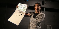 М.:Конечно. Даже мой младший, Тими, хоть еще и маловат - ему всего четыре – целиком посмотрел первый акт «Фауста»! Мы с ним смотрели из-за кулис и он увидел, как реквизитор понесла маску Мефисто Мартину, и спросил: «Мама, куда эта женщина пошла с маской Бабы-Яги?» (смеется) А однажды он увидел, как актер упал на сцене и кричал. Он меня спросил: «Мама, почему он это делает?» И я ответила ему: «Это такая игра». Теперь он знает, что театр — это место, где играют взрослые.
