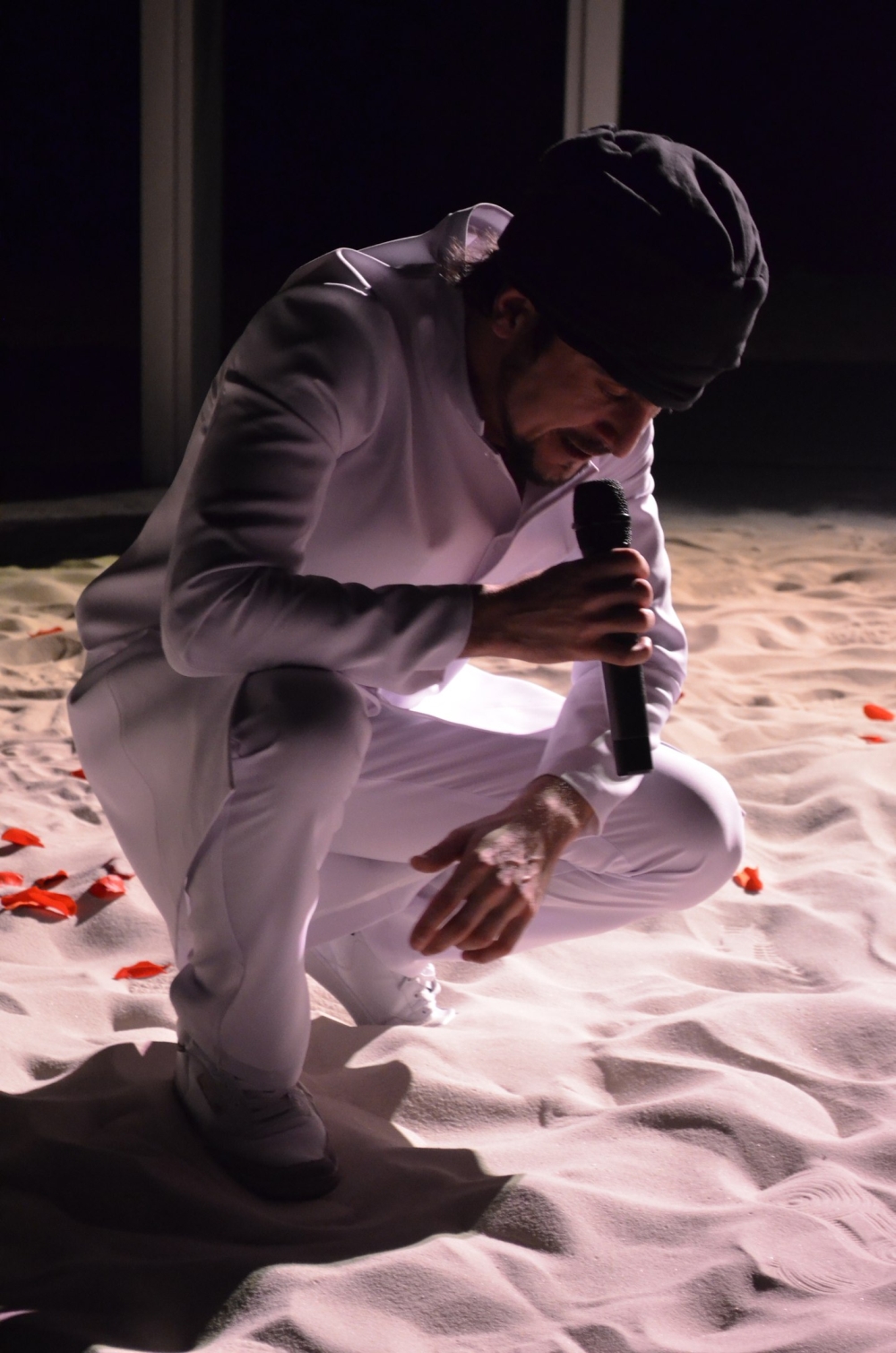 М.: Для меня это никогда не выглядело таким образом. На одной из репетиций «Медеи» маленький мальчик, который участвовал в спектакле, вылил воду Франку на голову. Было лето, было жарко, мы устроили амфитеатр прямо на ступенях главного входа в театр, и вот перерыв, Франк сидит и думает и я тоже сижу рядом с ним и «думаю», хотя на самом деле – просто наслаждаюсь тем, что я рядом (ну, или не совсем рядом, а, конечно же, на благоговейном расстоянии). И вдруг смотрю, этот маленький карапуз берет бутылку с водой и ррраз! - и выливает ему на голову! И я думаю: о, боже мой, что сейчас будет! Но Франк, как только увидел, что это сделал ребенок, сказал следующее: «Ах, это ты... По мне, так можешь делать со мной, что угодно. Все остальные тебе будут только благодарны». (смеется) Ребенок сделал это не подумав и сам испугался. Но реакция Франка сразила нас всех (улыбается).