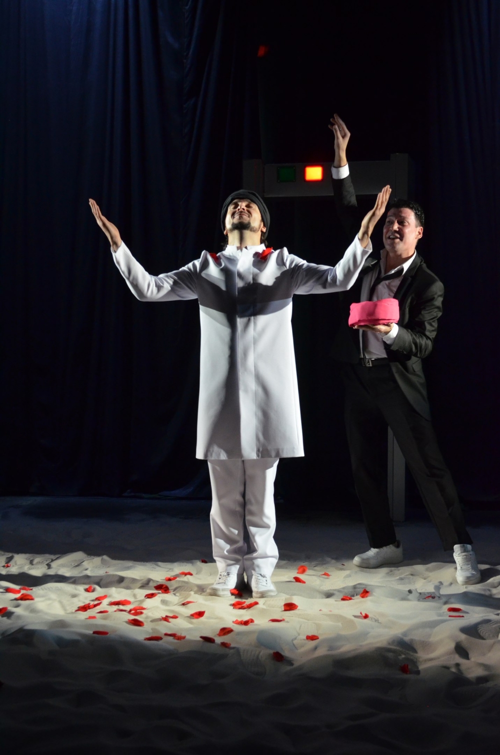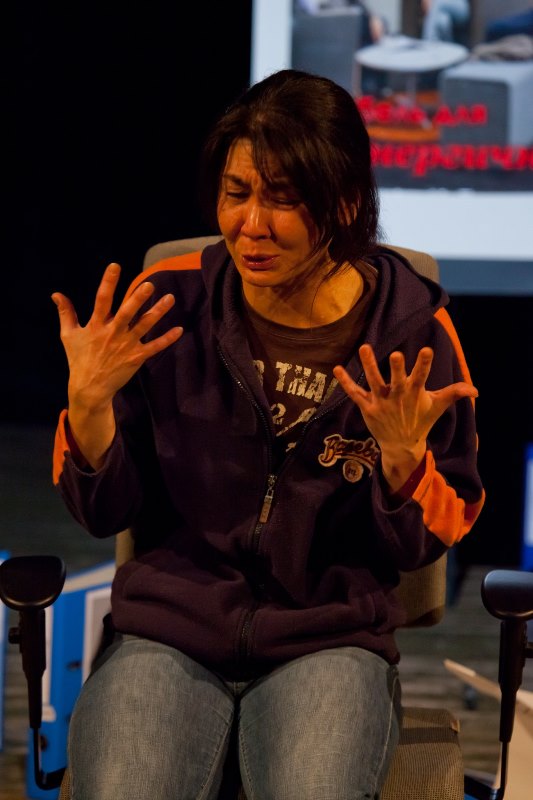 М.: Да, его агрессия направлена именно на сам процесс. С другой стороны, мне кажется всегда, что каждое его слово во время наших репетиций — будто бы уже обдумано заранее и предназначено специально для каждого из нас. К примеру: в начале репетиций актриса ломает ногу и оказывается в инвалидной коляске с гипсом, но к премьере ты понимаешь, что это ну настолько подходит спектаклю, что по-другому и быть не могло! То есть, словно это было заранее спланировано: он ее послал туда-то, чтобы она сделала то-то и при этом сломала ногу... (смеется)